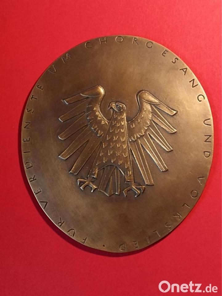 - Zur Medaille gehört eine Urkunde, die Bundespräsidenten Frank Walter Steinmeier unterzeichnet hat.