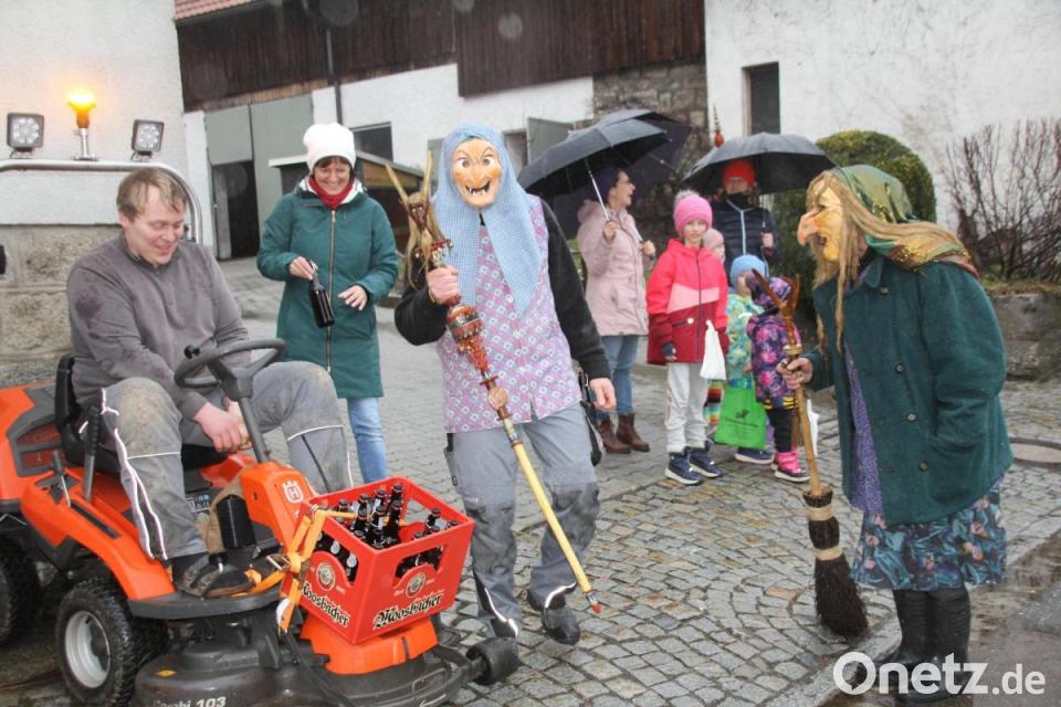 Wie seit vielen Jahren üblich war die erste „Rast bei „Hobelres“, wo die Maschkerer die ersten „Stärkungs- und Aufheiterungsmittel" zu sich nehmen konnten. Nach einer weiteren Pause und Verpflegung am Buswartehäuschen ging es nach dem Marsch durchs Dorf zurück zum „Bräu“, wo die „Roußerer“ auf ihren abendlichen Einsatz beim Greber warteten, wo die Frauen ihren „Weiberfasching“ feierten und sich ganz gern gegen ein „Schnapserl“ ein wenig mit Ruß einfärben ließen.