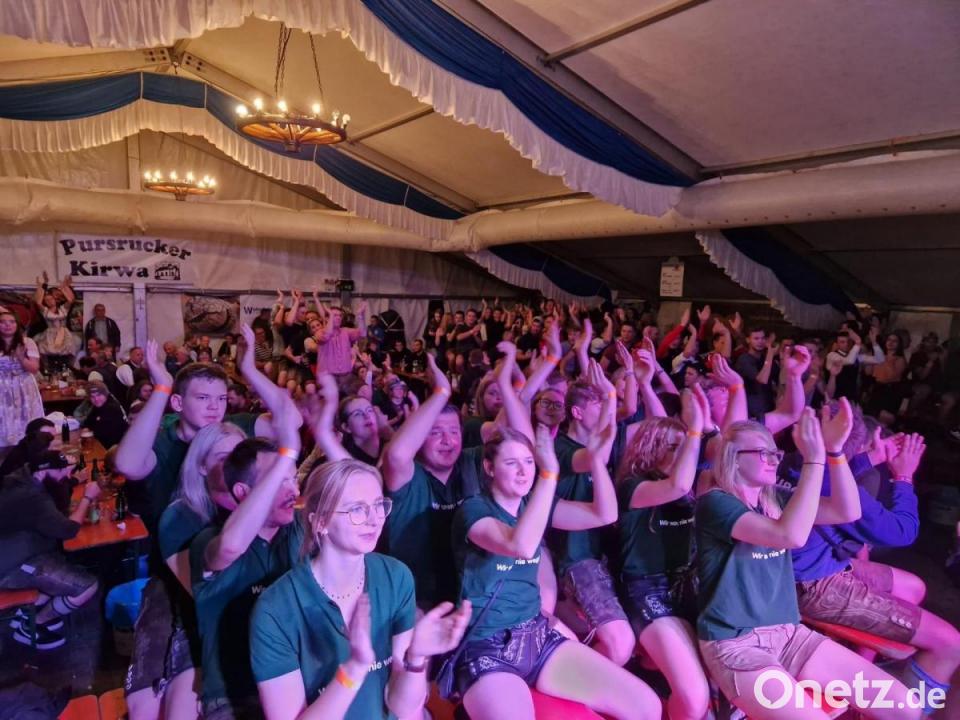Das war anstrengend: Nach drei turbulenten Tagen blicken die elf Pursrucker Kirwapaare und blicken auf eine gelungene Veranstaltung zurück und müssen nun ordentlich Schlaf nachholen. Am frühen Samstagmorgen brachten die Kirwaburschen und einige Ehemalige den von Franz Fruth gestifteten Baum vom Wald zum Kirwaplatz. Dort wurde er nach einem gemeinsamen Frühstück mit Girlanden und Kränzen geschmückt und mit Hilfe eines Radladers aufgestellt. Trotz nicht allzu gutem Wetters war das Zelt am Samstagabend dicht gefüllt. Kirwa-Chefin Corinna Donhauser und der stellvertretende Freudenberger Bürgermeister Franz Weiß eröffneten das Fest mit dem Bieranstich. Die Band Wöidarawöll brachte dann das ganze Zelt zum Brodeln.
