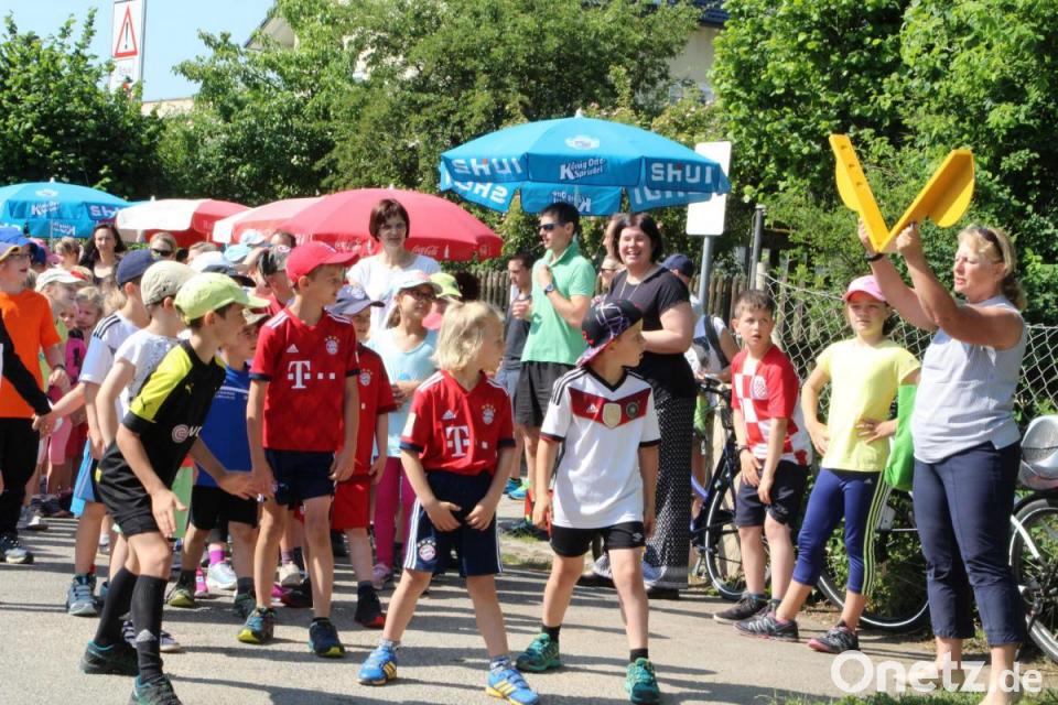 Angespornt von Konrektorin Anja Decker liefen alle 90 Schüler mit den Vorschulkindern des Raigeringer Kindergartens die markierten Runden. Anschließend spendeten sie für ihre gelaufene Strecke Geld. Dieses bekommt Pater Bernhard, Onkel einer ehemaligen Raigeringer Schülerin, der es für den Bau von Zisternen in Brasilien verwendet.