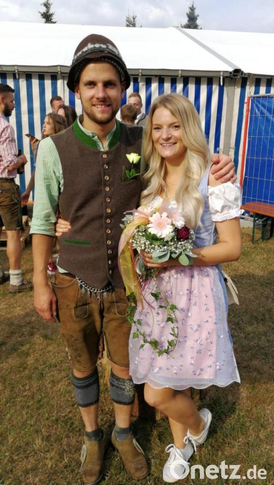 Stattliche 22 Kirwapaare tanzten den Kirwabaum aus. Oberkirwapaar wurden Lukas Ostfalk und Katharina Zumpe. Zum ersten Mal spielte heuer die Band „Mir 3 und Du“ aus Amberg bei der Kirwa. Horst Kurz, der Keyboarder der Band, hat extra für die Kirwagemeinschaft das Lied „Servus Osbert“ komponiert, das die Kirwapaare mit großer Begeisterung auswendig mitsangen.