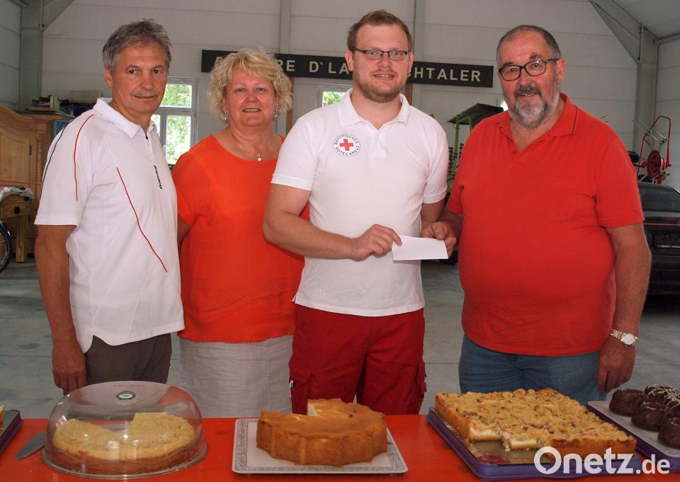 Zur nunmehr 15. Habsbergwallfahrt der Riedener katholischen Pfarrei übergaben Schaum und Kotz den Erlös, den Kotz auf 250 Euro aufgestockt hatte, an Thomas Graf für die Riedener Helfer vor Ort (HvO). In seinem Dank führte Graf aus: "Alarmiert wird der HvO über Funkmeldeempfänger durch die Integrierte Leitstelle Amberg parallel zum Rettungsdienst, kommt also nie alleine."