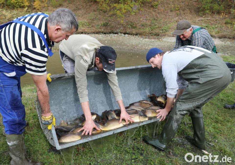 Das Wasser ist längst abgelassen, im Schlamm sind die Fische eine leichte Beute. Wie groß die ausfällt, ist jedes Jahr aufs Neue spannend. In guten Zeiten sind es pro Haushalt 10 bis 15. Der Dorfälteste Georg Blödt erinnert sich an einen Rekordfang, bei dem jeder mit 40 Pfund nach Hause ging. "Da hängt einem der Karpfen am Ende schon zum Hals raus", gesteht der 71-Jährige.