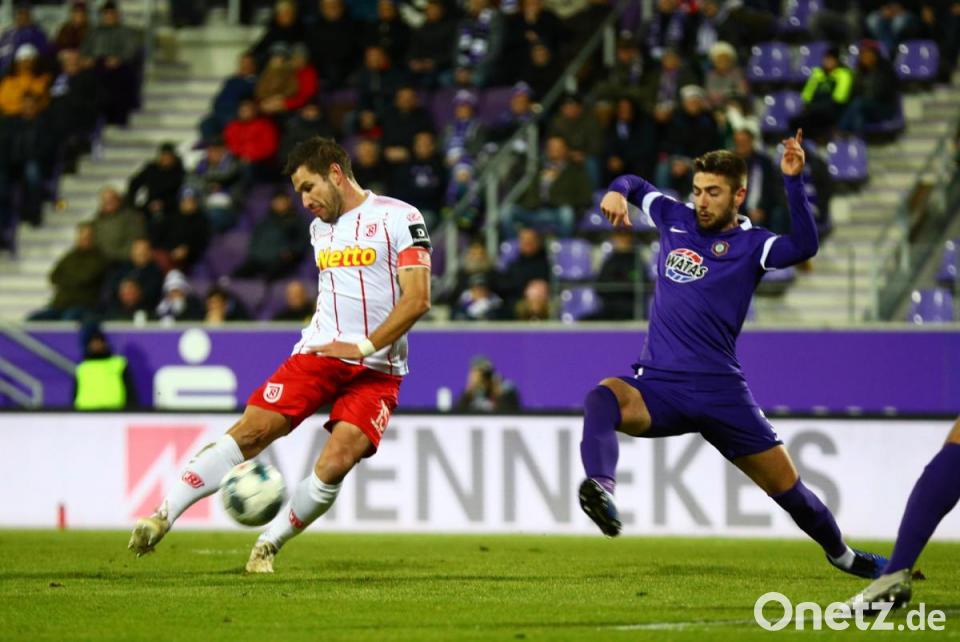 Dümmliche Regensburger Fehler führen zur verdienten Halbzeitführung für Erzgebirge Aue: Dreimal Aluminium nach katastrophalen Fehlpässen. Die vierte Ecke verwandelt Sören Gonther freistehend per Kopf vom Fünfer, 1:0 (44.).