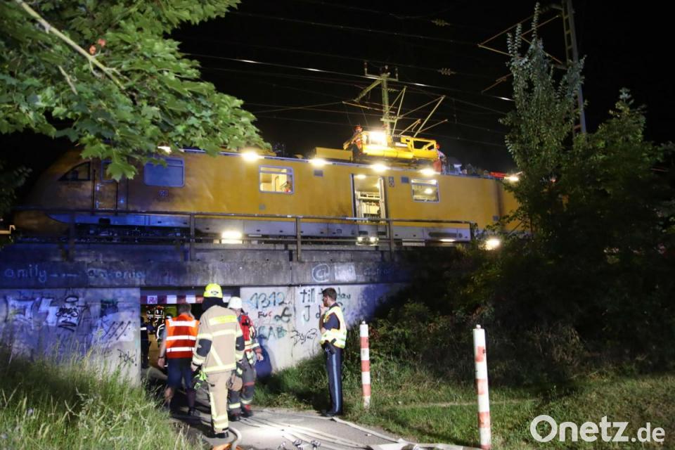 Der Zugverkehr zwischen Regensburg und Nürnberg musste für mehrere Stunden eingestellt werden. Grund hierfür war ein Schaden an der Oberleitung bei Regensburg. Gegen 23.30 Uhr riss diese in Prüfening. Es kam kurzzeitig zu einem Funkenüberschlag und zu einem lauten Knall, wodurch mehrere Anwohner auf den Vorfall aufmerksam geworden sind. Die Berufsfeuerwehr Regensburg sowie die freiwillige Feuerwehr Löschzug Altstadt rückten zu der Örtlichkeit an. Die Einsatzkräfte mussten jedoch waren, bis die Bahn den Strom abschaltete und ein Team anrückte, welches sicher stellte, dass kein Strom mehr auf der Leitung ist. Anschließend konnten Nachlöscharbeiten am Bahndamm von den Feuerwehrkräften gemacht werden. Die Zugstrecke fiel aufgrund des Schadens rund drei Stunden komplett aus. Bahnmitarbeiter rückten mit einer speziellen "Wartungs-Lok"an. Mit dieser konnten die Arbeiter mit einer Bühne zu den Schadstellen fahren um eine neue Oberleitung einzuspannen. Auch für die Einsatzkräfte der Feuerwehr zog sich der Einsatz rund drei Stunden.