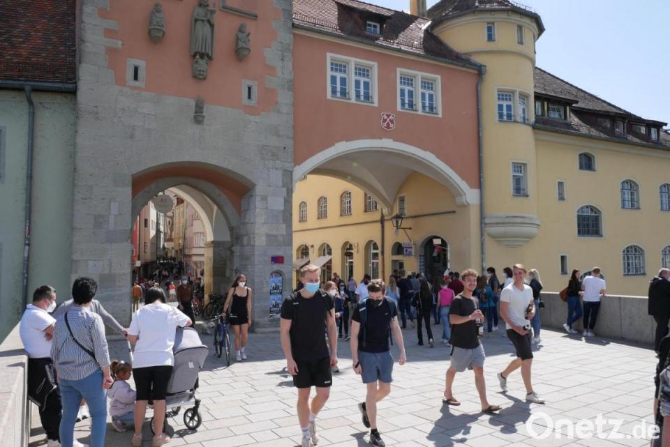 Das sonnige Wetter und die Lockerungen der Corona-Maßnahmen lockte am Samstag viele Menschen in die Regensburger Altstadt. Feierndes Partyvolk sorgte zu späterer Stunde für mehrere Polizeieinsätze und Randale. Wie das Polizeipräsidium Regensburg mitteilt, kamen mehrere feiernde Menschen gegen 23 Uhr zwischen Fischmarkt und Steinerne Brücke zusammen, die weder Abstände eingehalten noch Masken getragen hätten. In der Spitze schätzen die Beamten die Zahl der Personen auf etwa 500.