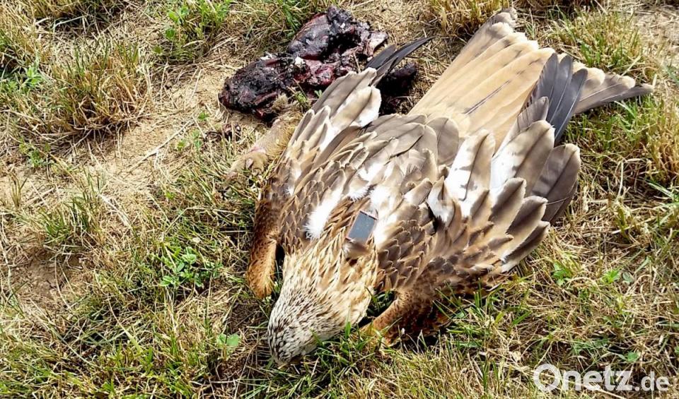 Bereits am 28. Juli entdeckte bei Dinau im Landkreis Regensburg eine Wanderin einen toten Rotmilan. Er lag neben einem Fleischbrocken auf einer Wiese. Der LBV konnte den Vogel nicht mehr bergen und untersuchen lassen. Eine Vergiftung ist laut Mitteilung des LBV jedoch "sehr wahrscheinlich die Todesursache". „Aufgrund unserer nicht einfachen Recherchen wissen wir nun, dass der totgefunden Rotmilan Jungtier ist, das im Frühjahr 2019 von Wissenschaftlern der Universität Marburg besendert wurde“, so von Lindeiner. Es stammt von einem Brutpaar aus dem südlichen Vogelsbergkreis. Der Vogel hielt sich am 27. Juli noch südlich von Regensburg auf und flog erst im Laufe des Tages die etwa 30 Kilometer Luftlinie in die Nähe von Dinau. Danach gab es keine Sender-Signale mehr von dem Tier.