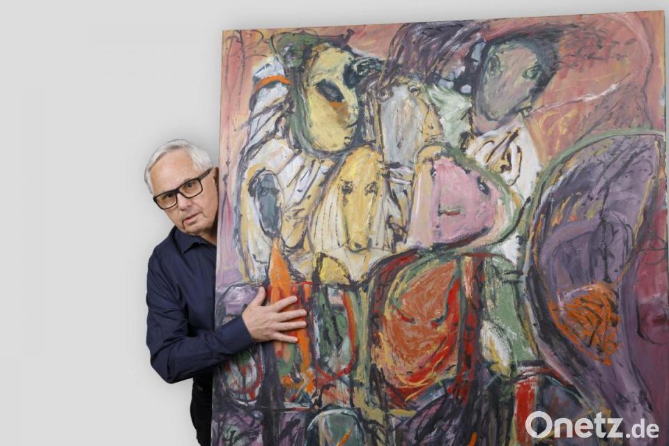 Dort ehrt die Stadt nun ihren bekannten Künstler den Sommer über mit einer großen Ausstellung in der Städtischen Galerie im Leeren Beutel. "I love you so" ist die Präsentation von 130 Werken überschrieben und auf dem Foto, das die Titelseite des zugehörigen, umfangreichen Katalogs ziert, blickt Jürgen Huber etwas spitzbübisch hinter einem seiner großformatigen Gemälde hervor.