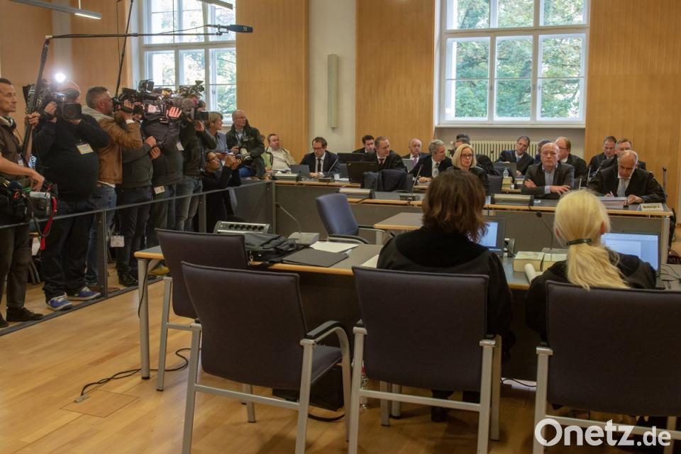 An Wolbergs Seite sitzen seine Anwälte, hinter ihm die Mitangeklagten mit ihren Verteidigern. Neben dem suspendierten OB stehen der ehemalige Fraktionsvorsitzende der SPD im Regensburger Stadtrat, Norbert Hartl, sowie der Bauunternehmer Volker Tretzel und ein früherer Mitarbeiter Tretzels, Franz W., vor Gericht.