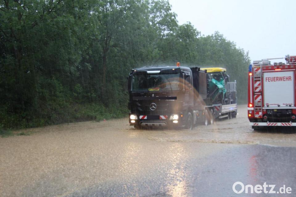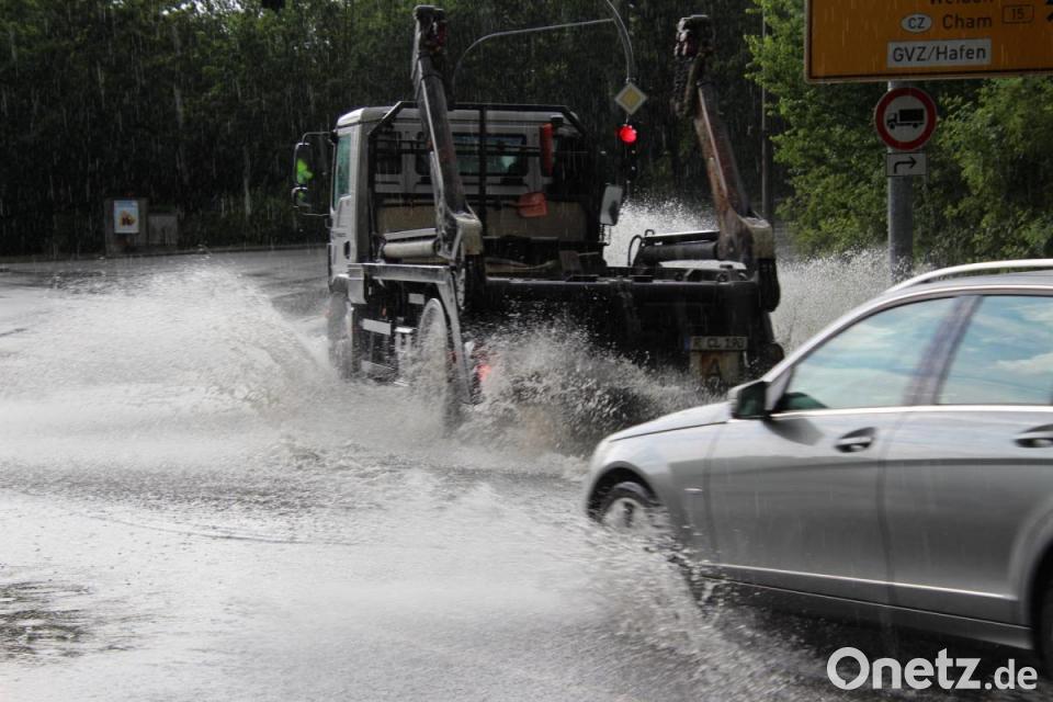 Der Deutsche Wetterdienst (DWD) hatte für Regensburg vor extremen Gewittern und Starkregen gewarnt. Kurze Zeit später entluden sich Regenwolken unter anderem über Barbing. Auf den betroffenen Straßen steckten die Autos fest, die Feuerwehr half den gestrandeten Fahrern, ihre Autos aus dem Wasser zu schieben. Auf einem überschwemmten Supermarktparkplatz zogen sich Kunden die Schuhe aus und krempelten die Hosen hoch, um in den Laden zu kommen. Dabei mussten sie über aufgestapelte Säcke voller Blumenerde steigen - eine kurzfristig improvisierte Barriere um die Regenmassen aus dem Geschäft zu halten.