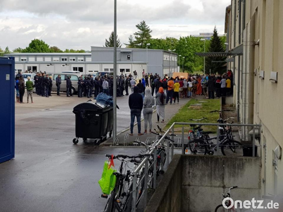 Eine Vielzahl von Polizisten aus dem Raum Regensburg standen etwa 40-50 Bewohnern der Einrichtung gegenüber. Aus taktischen Gründen wurde in enger Zusammenarbeit mit der Leitung der Unterkunft beschlossen, dass sich die aufgebrachten Bewohner beim Verbringen der Toten aus dem Haus beteiligen können. Sie trugen gegen 11.40 Uhr den Sarg unter Aufsicht der Polizei zu dem bereit stehenden Fahrzeug eines Bestattungsunternehmens.