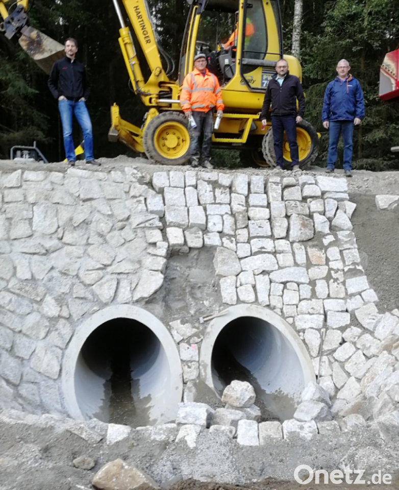 In der Auftragssumme von rund 42.000 Euro brutto war zudem neben der Erneuerung des Durchlasses die gesamte Straßenwiederherstellung auf eine Länge von rund 40 Metern bereits enthalten. Der Durchlass hat eine Länge von zwei mal zwölf Metern, die nun komplett durch Rohre aus Stahlbeton abgesichert ist. Zugleich wurden die beiden Straßenböschungen mit Wasserbaupflaster gesichert. Nach dem Baustart am 11. September steht die Maßnahme mit der Asphaltierung der Bitumenschicht kurz vor dem Abschluss. Gleichzeitig wird auch die Bodenwelle an der Straße zwischen Hagendorf und Reinhardsrieth, in der Kurve vor der Baustelle des Durchlasses, beseitigt.