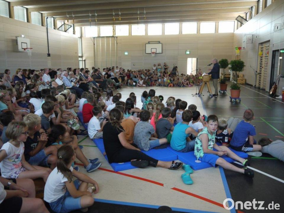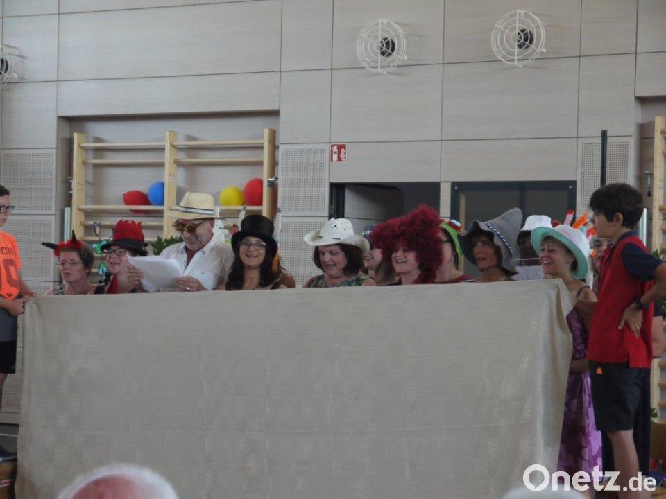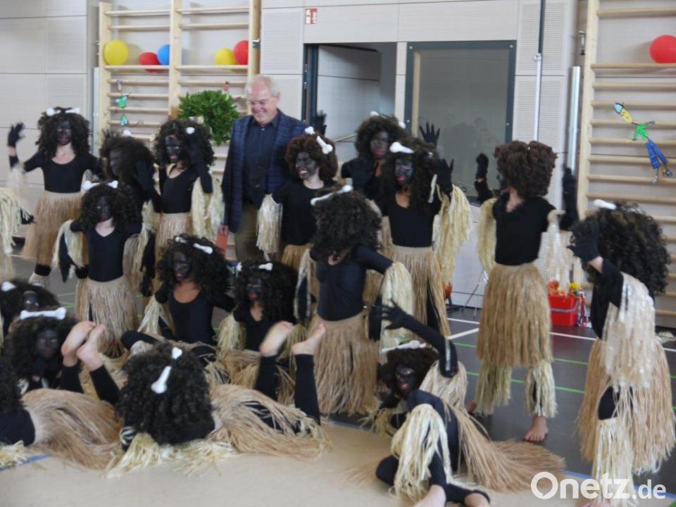Rund um die offizielle Verabschiedung boten Schüler und Lehrer ein Programm mit Musik, Tanz, Theater, Gedichten und Sketchen. Die Trommel-AG der 3. und 4. Klasse hatte mit ihrem Lehrer Johannes Mühldorfer als eine Hommage „Samba di Pedro“ einstudiert. Die Tanz-AG von Patrizia Ederer wirbelte mit Baströckchen und schwarzen Gesichtern zu „Africa“ durch den Saal, und mit „Gerüchte und ein Gedicht“ plauderte die AG Schulspiel unter Leitung von Martina Hummel ein wenig aus dem Nähkästchen. Sylvia Niederkleine ließ ihren Chor „Aber bitte mit Sahne“ singen, später von allen Klassen zusammen das rhythmische Lied „Si-mama-ka“. Das Lehrerkollegium sorgte mit dem Sprechstück „Woas mas?“ und dem Lied „Peter in Rente“ für viel Lachen.