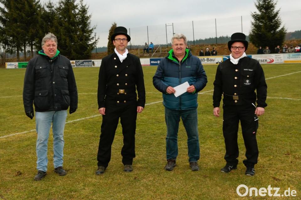 Über eine Geldspende von 1500 Euro freuten sich die Verantwortlichen des TSV Reuth beim letzten Heimspiel des Jahres: Die Kaminkehrermeister Matthias Schupfner, der als Spieler und Betreuer eine TSV-Vergangenheit hat, und Markus Neubert überreichten diese an die beiden Vorsitzenden Peter Schieder und Helmut-Stefan Neugirg. "Als Zeichen der Dankbarkeit für die schöne Zeit, die er in Reuth verbringen konnte", sagte Matthias Schupfner. Sein Kollege Markus Neubert, der die Gemeinde Reuth als Kaminkehrer betreut, hat sich gerne dieser Aktion angeschlossen. "Das Geld wird beim TSV sinnvoll in anstehende Projekte investiert, die viel mit der Nachwuchsarbeit zu tun haben", versicherte Vorsitzender Schieder. Dass Kaminkehrer auch Glück bringen können, zeigte sich dann im Spiel, als der TSV den Gast aus Kemnath klar mit 4:0 besiegte und somit als Tabellenführer der Kreisklasse West überwintert.