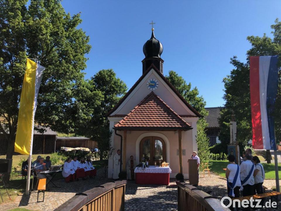Zahlreiche Gläubige feierten diesseits und jenseits des Silberbachs den Dankgottesdienst für alle Förderer des Kapellenbauvereins. Vorsitzender Adolf Legath dankte allen, die zum Gelingen der Messfeier beigetragen haben, besonders Pfarrer Stretz.