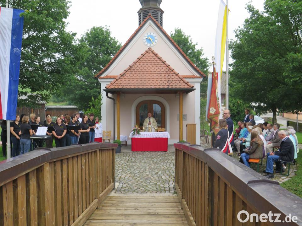 (jzk) Das heutige Kapellenfest lenke „unseren Blick auf das durchbohrte Herz Jesu, das symbolisch für sein offenes Herz steht, aus dem unaufhörlich Gottes Liebe strömt“, sagte Pfarrer Heribert Stretz bei der Eröffnung des Festgottesdienstes an der Herz-Jesu-Kapelle in Reuth. Das kleine Gotteshaus hatte der damalige Generalvikar Wilhelm Gegenfurtner am 11. August 1996 geweiht.