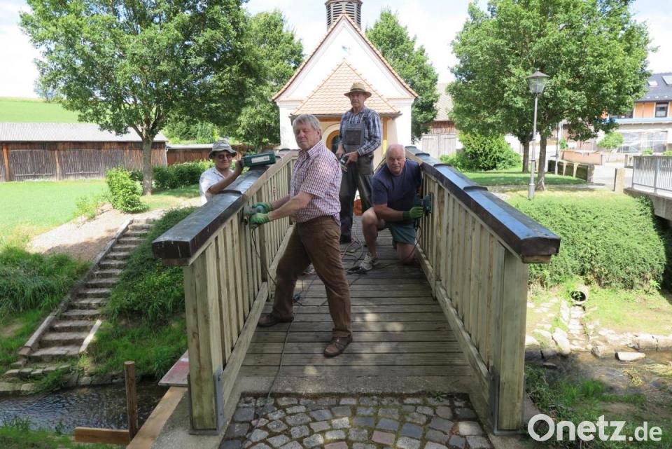 Jetzt musste er einige Mitglieder um Mithilfe bitten: Nach 24 Jahren war die Bogenbrücke über den Silberbach (den "Reuthigraben") in die Jahre gekommen und musste ausgebessert werden. Zweiter Vorsitzender Reinhold Meyer, Hans Sieber und der Kastler Bauhofleiter Robert Schraml sicherten ihm spontan ihre Hilfe zu.