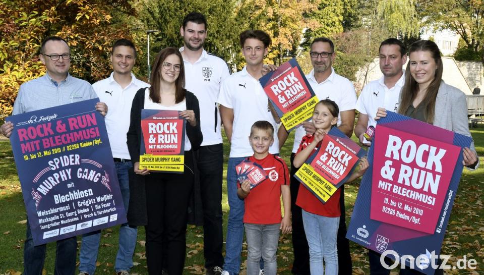 Am 10. Mai 2019 tritt die Spider Murphy Gang im Festzelt in Rieden auf. Tags darauf ist die Ortschaft Ziel des Landkreislaufs, den es seit 35 Jahren gibt. Weil das Riedener und das Amberg-Sulzbacher Jubiläum zusammen die Zahl 100 ergeben, zieht der 1. FC das Fest unter dem Motto "Rock & Run mit Blechmusi" groß auf: Drei Tage lang wird gefeiert, vom 10. bis zum 12. Mai 2019. Am Samstag, 11. Mai, ist ab 16 Uhr Siegerehrung des Landkreislaufs, ab 20 Uhr spielt Grögötz Weißbir auf.