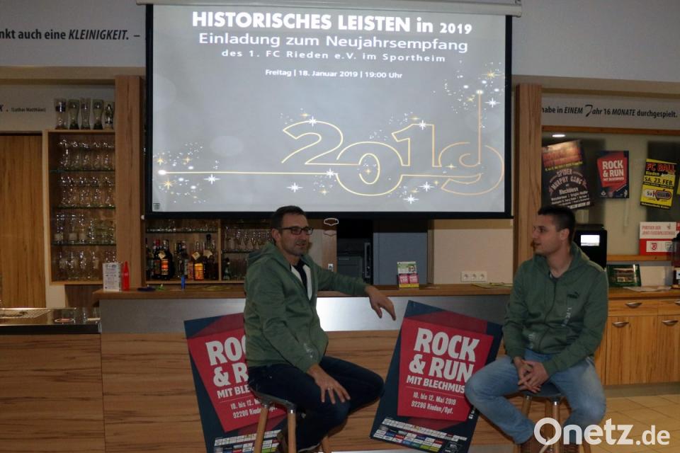 Der 1. FC Rieden hatte die Vertreter aller Abteilungen, Sponsoren, Förderer und Fans sowie die Mitglieder der Arbeitskreise zu „Rock & Run mit Blechmusi“ zum Neujahrsempfang ins Sportheim eingeladen. Nach dem Sektempfang blickten die Vorsitzenden Michael Poh und Sebastian Kemmeter per Interview auf das Jahr 2018 zurück.