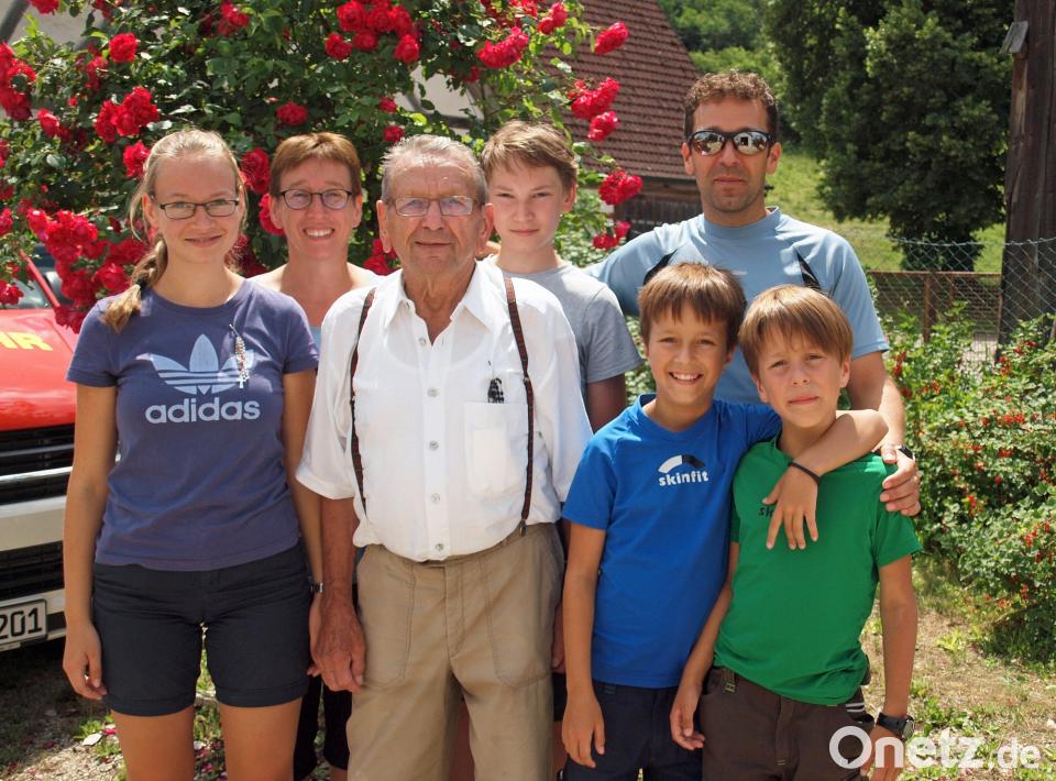 Zum 64. Mal nahm der 89-jährige Konrad Ibler (Dritter von rechts), als ältester Teilnehmer an der Wallfahrt zum rund 30 Kilometer entfernten Habsberg teil. Mit ihm seine Enkelin Sophie Rüth, Tochter Sabine Rüth, die Enkel Jakob Rüth und Andreas Ibler sowie seine Urenkel, die Zwillinge Max und Leo Ibler (von links).