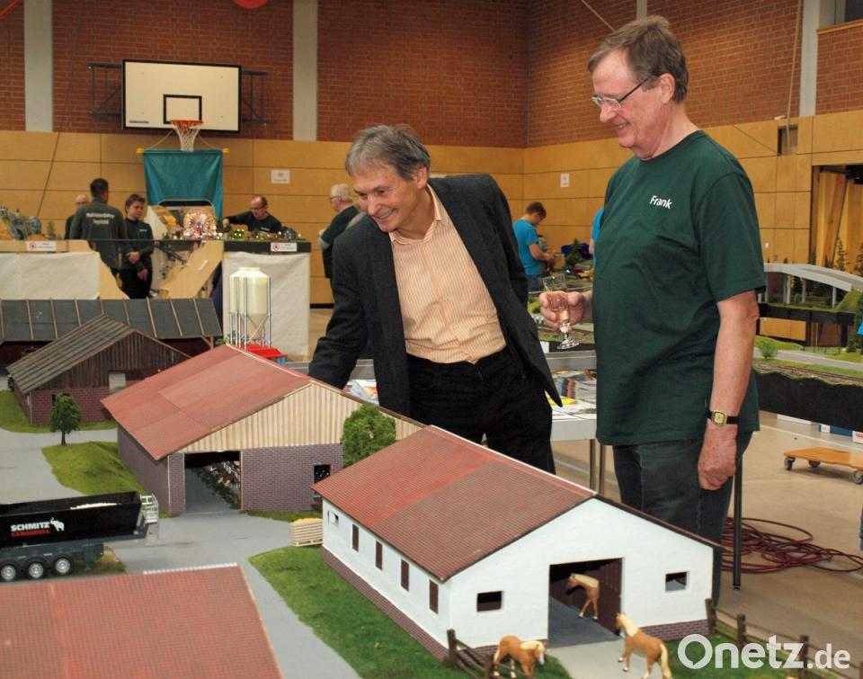 Begeisterung, Einsatzbereitschaft und harte Arbeit seien von den IG-Mitgliedern für die Ausstellung gefordert, betonte Zweiter Bürgermeister Josef Weinfurtner. Die Besucher - am frühen Samstag waren sie schon bis aus dem Regensburger Raum gekommen - standen bereits in den Startlöchern. Viele Digitalkameras hielten das Gezeigte im Bild fest. So etwa die 40-teilige Spur-1-Anlage (Maßstab 1:32). Diesel- und Dampflokomotiven mit Personen- und Güterwagen fuhren über die Anlage, die komplett mit Straßen- und Hausbeleuchtung ausgestattet war - beim Nachtfahrbetrieb ein Augenschmaus. Der zehn Quadratmeter große Bauernhof war nicht nur für Kinder ein Anziehungspunkt. Ferngesteuerte Traktoren und Lastkraftwagen mit Sattelauflegern düsten über das Gelände und durch die Ställe. Viele Kinder konnten sich von dem Traktor, der Kies auf ein Förderband kippte, nicht trennen. Die befreundete Interessengemeinschaft Pegnitztal war mit ihrer H-0-Anlage (Maßstab 1:87) mit 16 Modulen sowie Lokomotiven vor Ort. Sie hatte eine Berglandschaft mit Bahnhof und einen Freizeitpark mit Riesenrad aufgebaut.