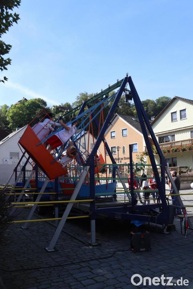 Groß war der Besucherandrang beim Marktsonntag, besonders am Nachmittag, als bestes Spätsommerwetter herrschte. Viele Besucher strömten zunächst in die Hauptstraße, um an den Flohmarktständen die eine oder andere Rarität zu ergattern. Auf dem Marktplatz öffnete sich eindrucksvoll die Festmeile in zwei Himmelsrichtungen. Am hinteren Marktplatz war ein wahres Paradies für Kinder aufgebaut: die Schiffschaukel. Davor gab es an einem Dutzend Ständen ein großes Waren- und Essensangebot.