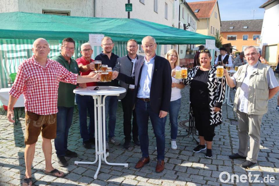 Nach dem Erntedankgottesdienst, den der Jugendchor Lords Day und Organist Stefan Weinfurtner mitgestalteten, machte sich Pfarrer Slawomir Nimeczewski gleich auf den Weg zur offiziellen Eröffnung des 18. Riedener Marktsonntags, die Festlbürgermeister Gerhard Schnabel vornahm. Mit ihnen stießen die Vertreter der beteiligten Vereine sowie die Markträte mit Bürgermeister Erwin Geitner an der Spitze auf das Fest an. Die Böllerschützen des Heimatvereins hatten zuvor lautstark den Festbeginn mit drei Salven verkündet.