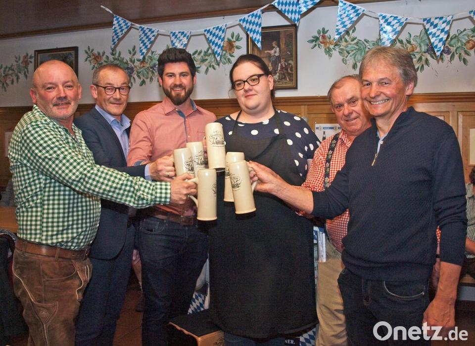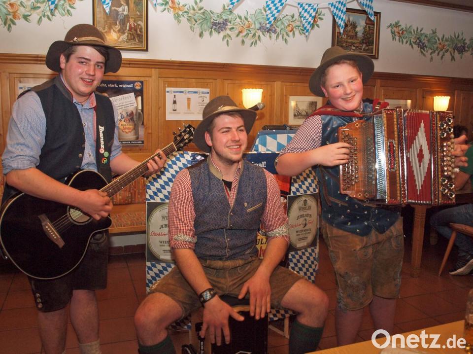 Zünftig spielten Philipp Haas auf der Gitarre, sein Bruder Johannes am Cajon mit Michael Drexler an der Steirischen beim Riedener Bockbierfest auf. Mit je einem Winkler Jubilator-Doppelbock stieß Wirtin Susanne Richthammer mit Bürgermeister Erwin Geitner, Juniorbräu Maximilian Winkler, Zweitem Bürgermeister Josef Weinfurtner, Drittem Bürgermeister Gerhard Schnabel und ihrem Vater Erhard „auf an pfundigen Bockbierabend“ an. Dann ging es Schlag auf Schlag.