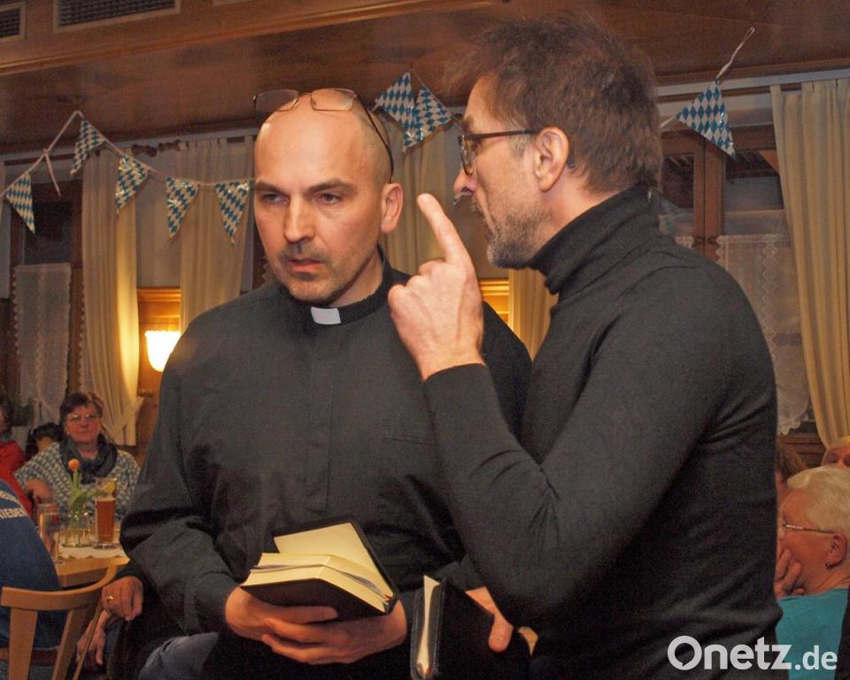 Knaller des Abends waren Armin und Johann Hofrichter als Aspiranten auf die nach Pfarrer Schubachs Versetzung freiwerdende Pfarrstelle. Da erfuhr man, dass viele CSU-Räte nur vor Wahlen als Kirchgänger zu sehen seien, die Kirchenuhr noch von Hand aufgezogen werden müsse. "Da hatte Rieden schon Ein-Euro-Jobber als es noch die D-Mark gab." Auch das Zölibat und dessen Abschaffung war Thema. Nur: "Das werden wir nicht mehr erleben, vielleicht aber unsere Kinder." Die Musikanten spielten „Ja, wos a rechter Waldler is“ und Ziegenhirt Mulzi (Gerhard Fleischmann) mit seinen zwei Geißböcken schwadronierte über seine Schwierigkeiten mit dem Doppelbock. "Aber über Rieden weiß ich Geschichten, über Personen und Vereine kann ich berichten.“ Ob Tauziehfreunde, Goaslandler, Vilstalschnupfer, Reservisten, FC Rieden, Fischereiverein, Kirwaleit, Narrhalla, Wanderfreunde oder Feuerwehr, jeden und alles nahm der Mulzi in die Mangel. Dem Publikum gefiel's prächtig.