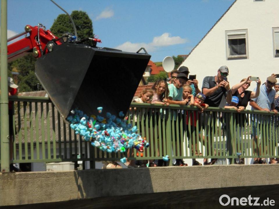 Anlässlich des Sommerfestes des 1. FC Rieden startete zum zweiten Male das Entenrennen auf der Vils. Das Interesse der Bevölkerung war sehr groß. Alle 300 Enten wurden im Vorfeld verkauft. Nicht nur die Kinder hatten ihre helle Freude daran, auf und an der Riedener Vilsbrücke den Start live zu verfolgten. Als der Radlader die zum Teil wunderschön dekorierten Enten über das Brückengeländer kippte, waren mehr als 100 jubelnde Zuschauer vor Ort. Riedens Bademeister Max Wagner und Vertreter der Wasserwacht Kümmersbruck wartete am Ziel am Riedener Badparkplatz gespannt auf die ersten Ankömmlinge. Viele Besucher wanderten von der Brücke aus zu Fuß dorthin und hofften, ihren Schützling ganz vorn zu sehen. Beim FC-Sommerfest wurden die Sieger bekanntgegeben. Bei den gelben Sponsoren-Enten (Gewinn: Saisondauerkarte für den 1. FC Rieden) behauptete sich Gerhard Schnabels Starter vor zwei Enten von Norbert Hauser. Beim Wettbewerb der blauen Enten (Kinder) freute sich Leonie Wellan über den Sieg. Jonas und Noah Frankerl landeten auf den Plätzen zwei und drei. Für die ersten 15 und die drei schönsten blauen Schwimmtiere (Nele Jäger, Mia Hofmann, Leo Lui Dsching) gab es Sachpreise im Wert von insgesamt 1000 Euro. Mit dem Erlös wird die Errichtung eines Natur- und Generationen-Spielplatzes am Sportplatz unterstützt.