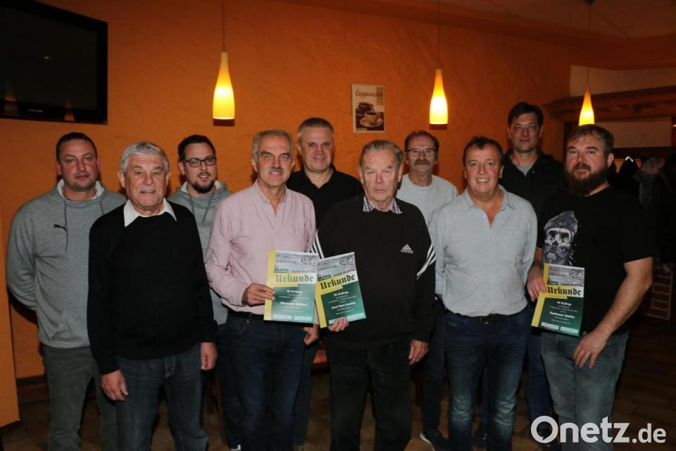 Mit Urkunden und einer Flasche Wein wurden für eine Mitgliedschaft über 15 Jahre Hans Schötz und für 20 Jahre Thomas Schmucker, Hans-Joachim Ernst und Günter Donhauser ausgezeichnet. Bernhard Salbeck erhielt für 25 Jahre und Adalbert Obermeier für 30 Jahre Mitgliedschaft zusätzlich noch eine Funkwanduhr.