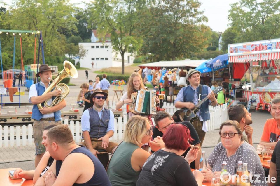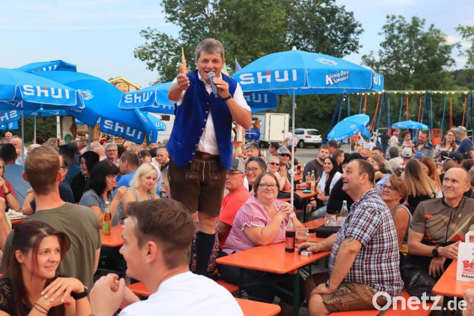 Begleitet wurde der Bäff bei seinem Auftritt von den vier Musikanten von „Saba z´dreckat“, das sorgte für ein volles Festgelände zwischen Vils und Freibad. Um 19 Uhr stieg die Spannung. Die ersten hatten den Bäff im Festzelt erspäht, um 20 Uhr legte er los und lief schon nach kurzer Zeit zu Höchstform auf.