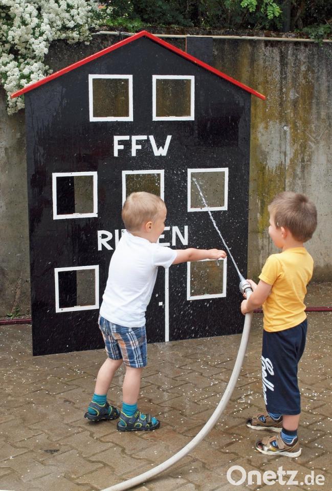 Für den Nachwuchs - am Freitag, 25. Mai, werden Steffi Igl, Tanja Berschneider, Bianka Hammer und Sandra Wiendl zur Gründung eine Kinderfeuerwehr einladen - gab es ein erstes Trainingslöschen. "Wasser marsch!" kommandierte einer der Kleinen, der Wasserdruck war jedoch spärlich, musste er doch von Kindern mit einer Handpumpe erzeugt werden. Für die Mädchen und Jungen aber war noch mehr geboten: Sie konnten in eine Feuerwehrmontur schlüpfen, Puzzle zusammensetzen und Malen war angesagt. Dann noch der Renner für alle Erwachsenen: Von der auf 32 Meter ausgefahrenen Leiter der Amberger Feuerwehr wurde ein Blick über Rieden und das untere Vilstal geboten.