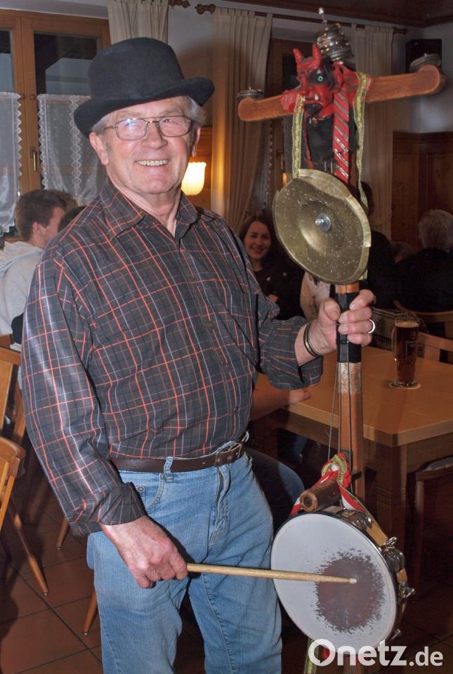 Schon bevor es zur Einstimmung eine normale Wurstsuppn gab, kam Leben in die Bude: Sieben urige Musikanten zogen ein, voran mit seinem Schifferklavier Toni Reindl, dann Richard Zapf mit seinem Akkordeon. "Dem sei Bua, der Wastl", bearbeitete die kleine Trommel, Walter Lochner seine Quetschn, Ernst Dobmeier seine Gitarre, Erhard Richthammer sein Tamburin, und Ernst Pilhofer setzte mit der Teufelsgeige einen drauf. Sie spielten zünftig auf und sangen mehr laut als schön dazu.