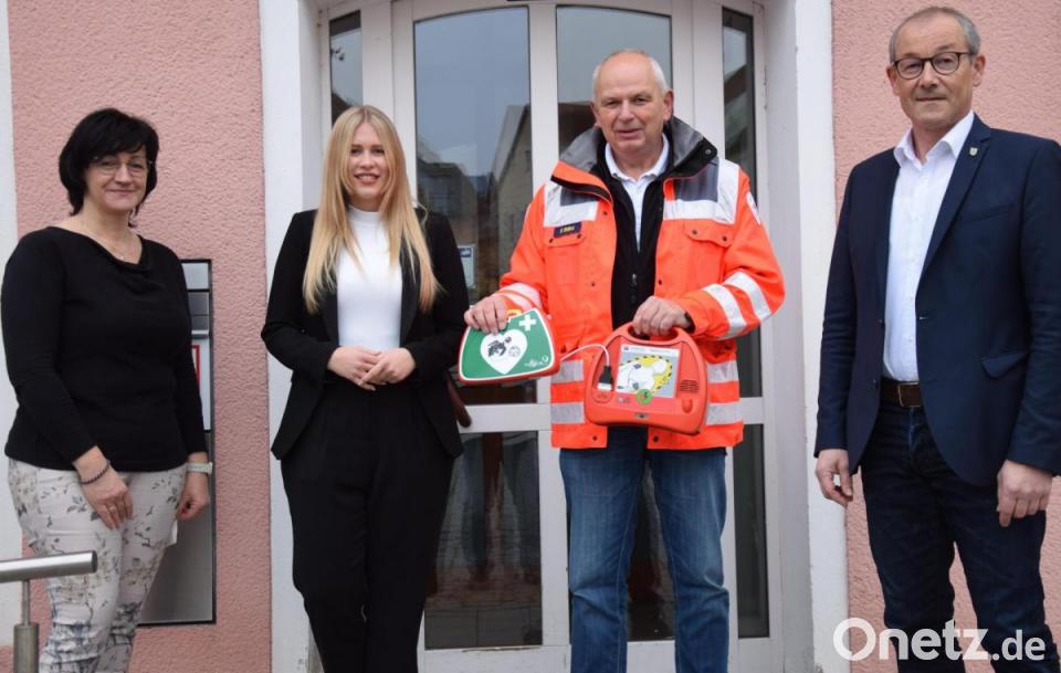 Ein Stück mehr Sicherheit für die Menschen bietet jetzt in Rieden zentral am Marktplatz eine neue Einrichtung. In Eingangsbereich der Sparkassenfiliale, gleich neben dem Geldautomaten, ist ein Defibrillator, kurz Defi genannt, installiert worden. Wie der Leiter der Rettungswachen im Landkreis Amberg-Sulzbach, Erwin Gräml, sagte, sei der Defi immer ein sicherer Helfer für Menschen mit akuten Herzproblemen. Wichtig sei es für die Bevölkerung zu wissen, wo in ihrer nächsten Umgebung ein Defibrillator zu finden sei. Das Gerät ist nach seinen Angaben selbsterklärend: "Man kann bei der Handhabe nichts falsch machen." Etwa 60 Geräte seien derzeit im Landkreis installiert.