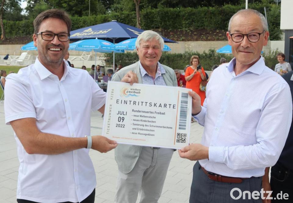 Sämtliche Handwerker, die bei der Sanierung tätig wurden, die Planer und Architekten wollten der Gemeinde zum Abschluss noch etwas Gutes tun und so kamen 6000 Euro als Spende für das Freibad zusammen. Bei der Freibaderöffnung kam es dann zur Übergabe: stellvertretend für alle Spender überreichte Architekt Markus Maier den Scheck an Bürgermeister Erwin Geitner. Die Gemeinde kann damit Geräte für den neuen Spielplatz kaufen. Was genau damit bezahlt wird, entscheidet letztlich der Marktgemeinderat.