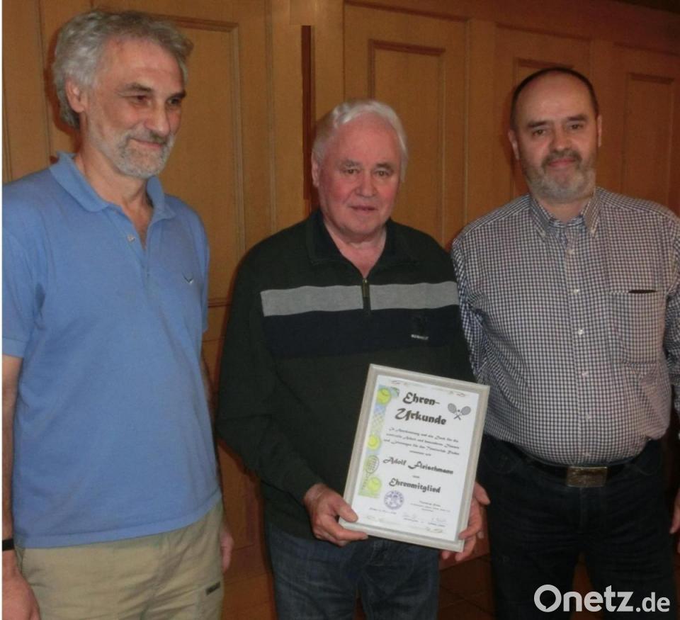 Eine ehrenvolle Aufgabe kam Werner Lang und Willi Anhalt zu: Für seine besonderen Verdienste und seinen unermüdlichen Einsatz bei der Gründung des Vereins, beim Bau des Tennisheimes und auch als langjähriger Aktiver wurde Gründungsmitglied Adolf Fleischmann zum Ehrenmitglied der Sparte ernannt. Dies erfolgte auf einstimmigen Beschluss der Spartenleitung.