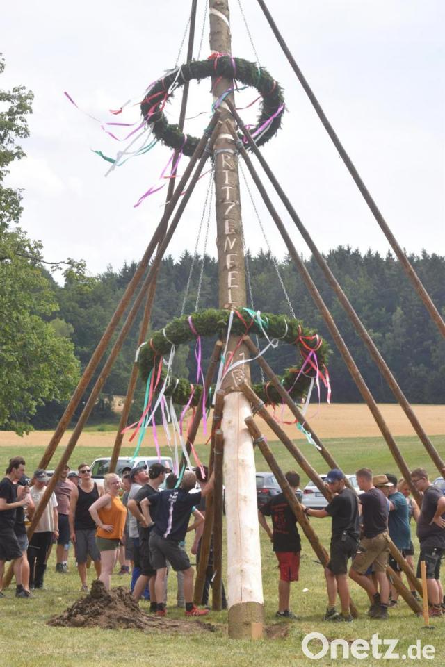 Zum 30. Mal stellten heuer die Kirwagemeinschaft Ritzenfeld und die Feuerwehr Augsberg einen Kirwabaum auf. Er bringt es auf eine stattliche Länge von 26 Metern und kommt aus dem Wald von Manfred Feigl, der den Baum im Jubiläumsjahr gestiftet hat. In echter Handarbeit stellten ihn die Kirwaburschen am Samstagnachmittag auf. Das Kommando führte zum ersten Mal in Ritzenfeld Dennis Marx aus Neukirchen. Er hat die Aufgabe von Richard Götz übernommen, der zeitgleich beim Baumaufstellen in Sunzendorf im Einsatz war. An diesem Montag sind alle zur Nachkirwa eingeladen. Höhepunkt ist dabei, dass um 19 Uhr neun ehemalige Kirwapaare zum Jubiläum den Baum noch einmal austanzen. Gegen 22 Uhr wird das Wahrzeichen verlost. Den musikalischen Teil des Abends bestreitet die Band Nachtwerk.