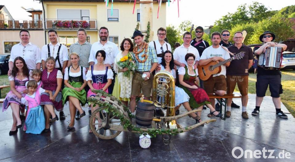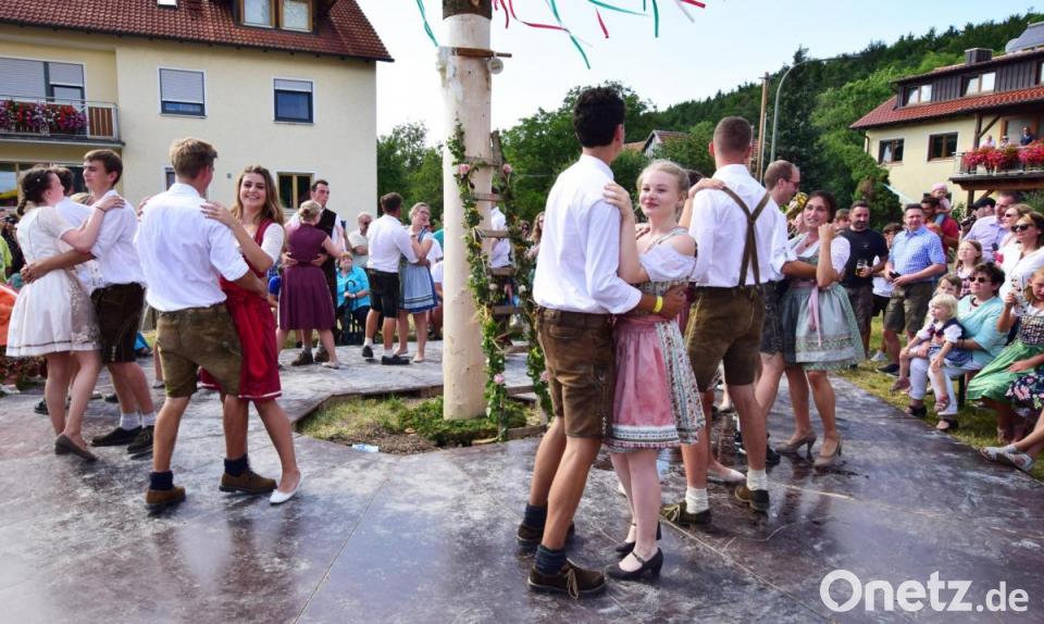 Junge und ehemalige Paare eröffneten im Zelt den Tanz, bei dem die Band Nachtwerk für die passenden Klänge sorgten. Im Laufe des Abends wurde auch noch der Kirwabaum verlost.