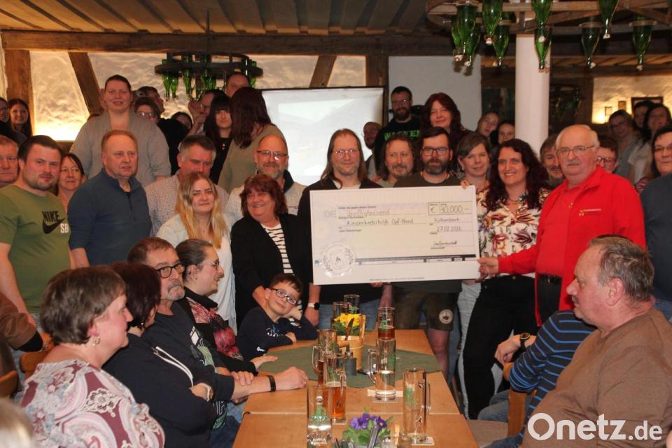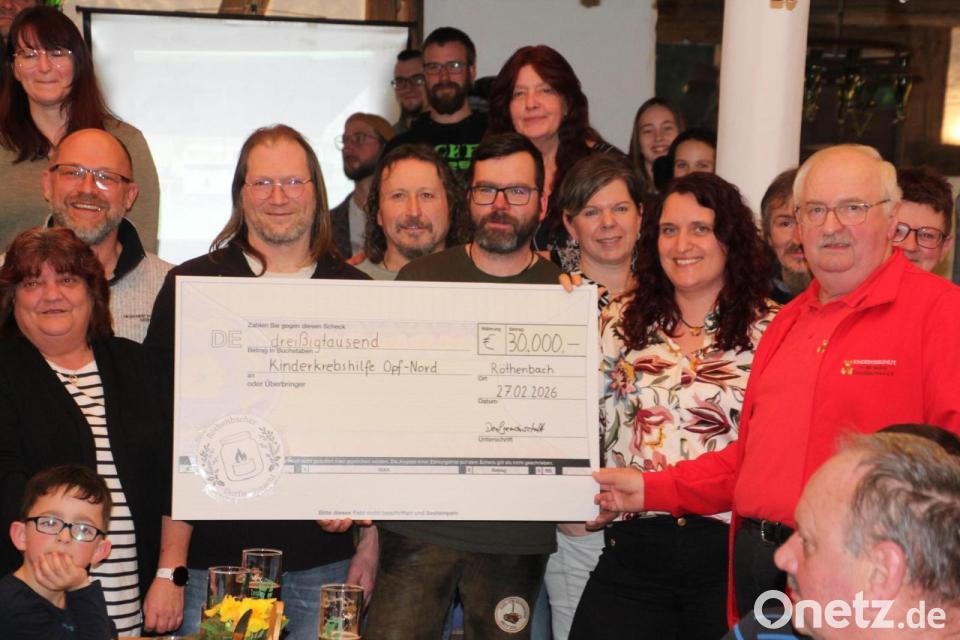 Es war die achte Auflage der Röthenbacher Dorfweihnacht, die im vergangenen Jahr am dritten Adventssonntag in dem kleinen Dorf im Steinwald stattfand – mit einem überragenden Ergebnis. Der Reinerlös dieses gut sechsstündigen Weihnachtsmarktes übertraf alle Erwartungen. Sagenhafte 30.000 wurden am vergangenen Freitag im Rahmen eines Abschluss-Helferessens an Herbert Putzer von der Kinderkrebshilfe Region Oberpfalz Nord übergeben. Der Verein war dafür mit der Vorstandsspitze zum „Rechensimer“ gekommen.