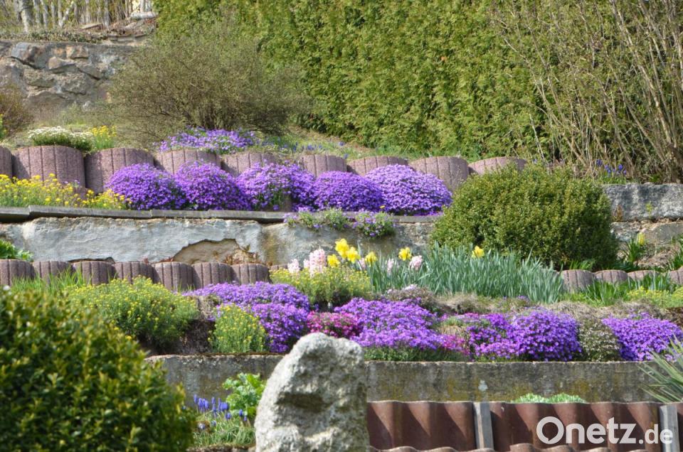 Der Frühling klopft an die Oberpfälzer Pforte. Die blühenden Blaukissen schmiegen sich fast zärtlich an die granitenen Steintreppen des steil abfallenden Geländes und ergeben ein leuchtendes Panorama, das weit ins Land leuchtet. Noch dazu bunkern die Steintreppen die Wärme, die sie dann an die Pflanzen abgeben. Der Frühling lässt grüßen. Auch wenn sich die vergangenen Tage wieder mehr den frostigen Zeiten zuwandten und der Rest an Pflanzen im Garten noch etwas zurückhaltend ist, bekommt die Sonne bald die Überhand. Die Blaukissen haben sich gut an die manchmal noch rauen Bedingungen gewöhnt und leuchten mit ganzer Kraft. Mit seinem millionenfach erwachenden Leben ist der Frühling ein Sinnbild der Befreiung. Vom Zwang der Frostperiode erlöst, strecken sich Blätter und Blüten dem Licht entgegen, schweben Insekten durch die milde Luft, bauen Vögel ihre versteckten Nester und schmettern frohe Lieder.