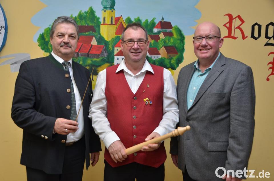 Fast von Beginn des Bestehens gehört Wolfrath zum Ensemble und übernahm früh Verantwortung. Zeit, ihn für 40 Jahre an erster Front zu würdigen. Wenn schon Bezirksvorsitzender Gerhard Engel vom Nordbayerischen Musikbund aus Neumarkt nach Roggenstein anreist, dann ist Besonderes zu erwarten. Er brachte neben einer Urkunde die goldene Ehrennadel für Wolfraths Dirigententätigkeit mit. „Gute Dirigenten sind Mangelware“, fand der Bezirksvertreter.