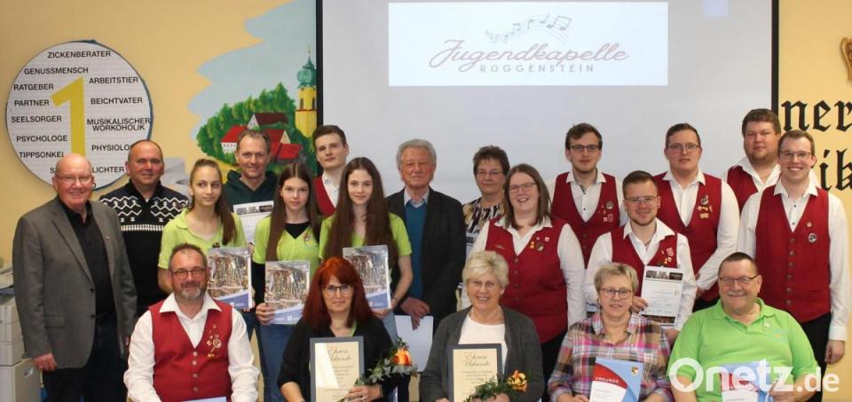 Zur Jahreshauptversammlung der Jugendkapelle begrüßte Vorsitzender Daniel Fenzl 47 Mitglieder und Gäste im voll besetzten Probenraum. Nach dem Rückblick von Kapellmeister Josef Wolfrath informierte Kapellensprecherin Angelika Zitzmann über außermusikalische Aktivitäten. Kassenchefin Theresa Braun sprach von einem Plus. Der Bezirksvorsitzende des Nordbayerischen Musikbunds, Gerhard Engel, nahm mit dem Vorsitzenden Ehrungen und Auszeichnungen vor. Seit 45 Jahren steht Wolfrath an der Spitze der musikalischen Vereinigung. Außerdem wurde dessen Ehefrau Inge, die 51 Jahre Mitglied im Verein ist und 33 Jahre Schriftführerin war zum Ehrenmitglied ernannt. Zu dieser Ehre kam auch Heidi Hierold, die 53 Jahre lang die Treue hält und 16 Jahre Schriftführerin war.