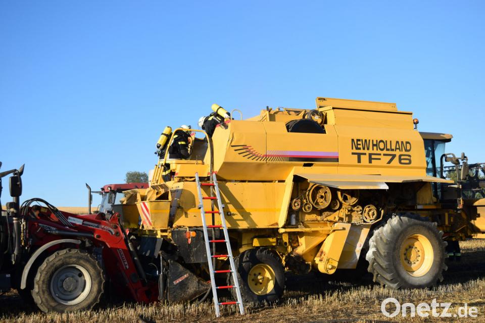 Beim Eintreffen der Einsatzkräfte standen der Mähdrescher sowie Teile des Feldes in Flammen. Durch die schnelle Hilfe eines in der Nähe wohnenden Landwirts konnte der Flächenbrand mittels Traktor und Pflug schnell unter Kontrolle gebracht werden. Die Feuerwehr konnte den Mähdrescher ebenfalls rasch ablöschen. Bei der Suche nach Glutnestern stellten die Einsatzkräfte fest, dass aus dem Mähdrescher Diesel auslief.