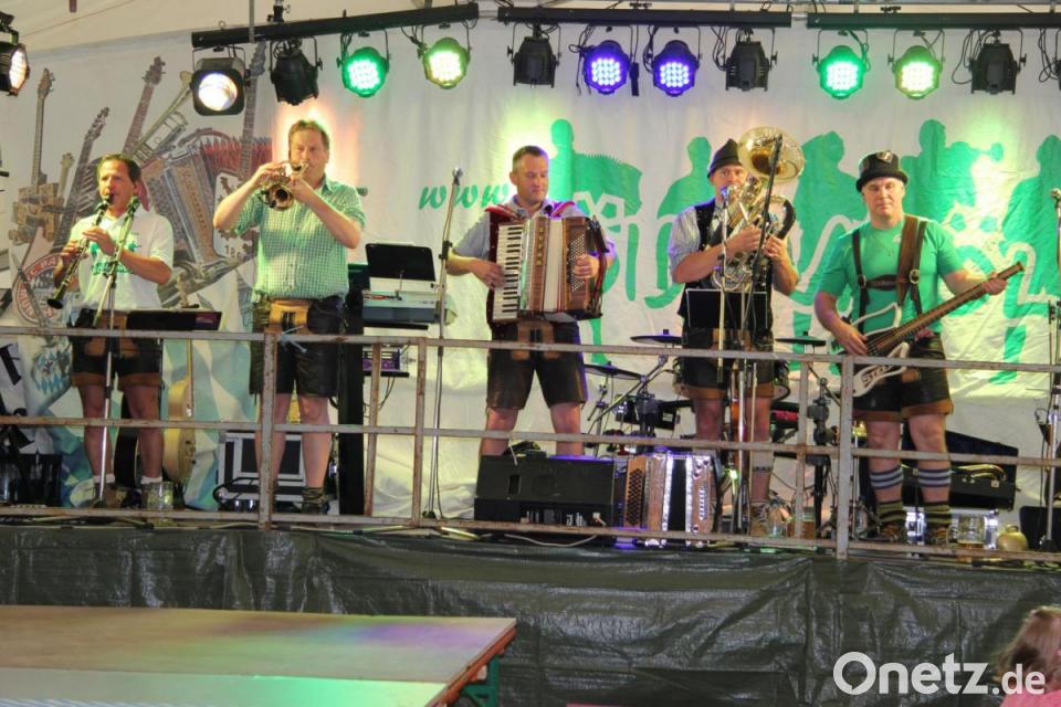 Bürgermeister Josef Deichl zapfte mit drei Schlägen das erste Fass Bier an. Gemeinsam mit den Ehrengästen und dem Oberkirwapaar, Tanja Obermeier und Simon Weikmann, stieß Deichl auf ein schönes Fest an. Die Band "Wöidarawöll" spielte im Festzelt auf. Der guten Stimmung taten auch die Gewitterschauer keinen Abbruch.