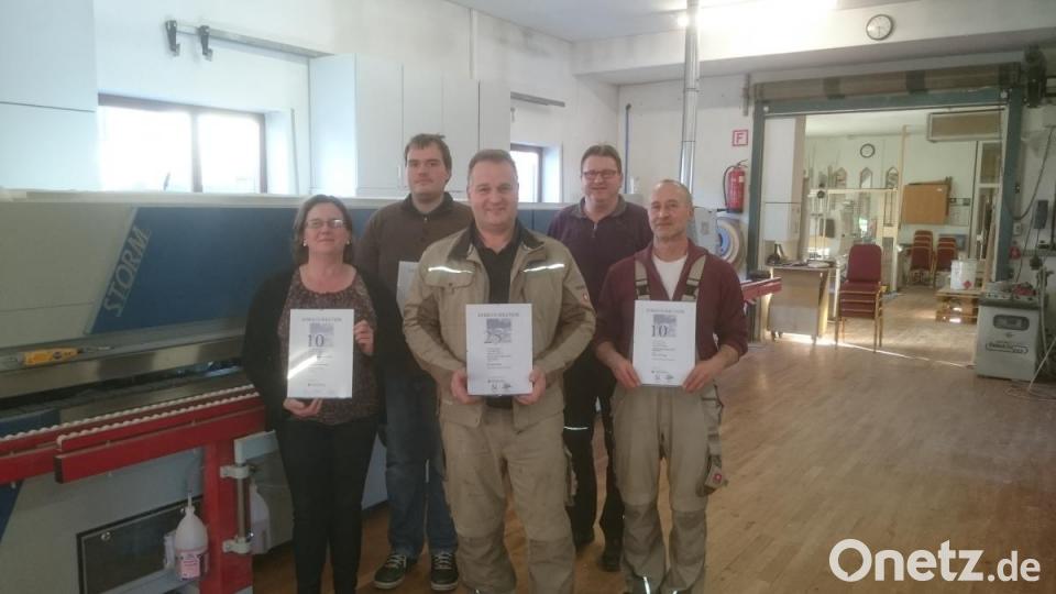 Es sei heutzutage nicht mehr selbstverständlich, dass man einen angestrebten Beruf nach der Lehrzeit weiterführt, "einfach wie es sein soll aus Freude an seiner Arbeit". Stattdessen werde die Ausbildung im Handwerk als das Sprungbrett in die Industrie oder als Grundlage für eine weiterführende Ausbildung genutzt. "Spricht ja grundsätzlich nichts dagegen - wir brauchen ausgebildete Facharbeiter - aber wir brauchen auch Leute, die die Arbeit in unseren Werkstätten leisten", erklärte Schönberger. Der Geschäftsführer dankte allen Geehrten für deren Einsatz für das Unternehmen und ihre Treue. Für 10-jährige Betriebszugehörigkeit wurden Anton Christinger, Dominik Bauer und Walburga Schönberger geehrt, für 25 Jahre Lothar Hoyer. Die Geehrten erhielten eine Jubiläumsprämie, ein Geschenk und eine Urkunde. Lothar Hoyer erhielt noch zusätzlich die Anstecknadel in Gold der Handwerkskammer.