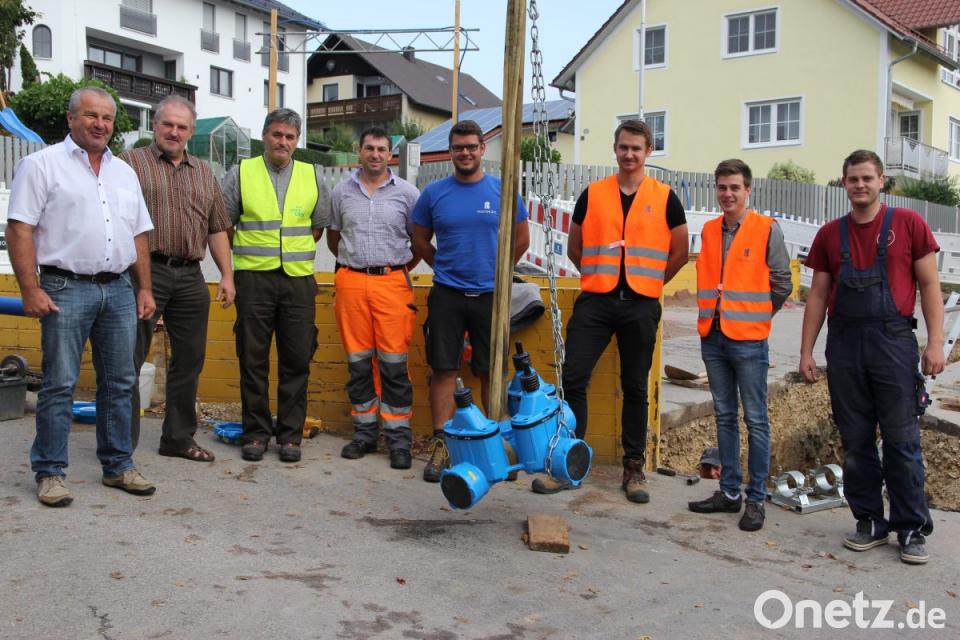 Seit Anfang Juli beherrschen die Baumaschinen den Ort. Die Erneuerung der Wasserleitung des Zweckverbandes zur Wasserversorgung der Brudersdorfer Gruppe läuft auf Hochtouren. In einem Pressegespräch gab es nun aktuelle Informationen vom stellvertretenden Zweckverbandsvorsitzenden, Bürgermeister Josef Deichl, vom Geschäftsführer des Zweckverbandes Hans Werner, vom Bauleiter des Ingenieurbüros Seuss Helmut Schatz, von Gesamtbauleiter René Heuberger, von Bauleiter Andreas Ranzinger von der Firma Pfaffinger, vom Bauleiter für die Spülbohrung Stefan Pilger sowie von Bauhofleiter Markus Ries.