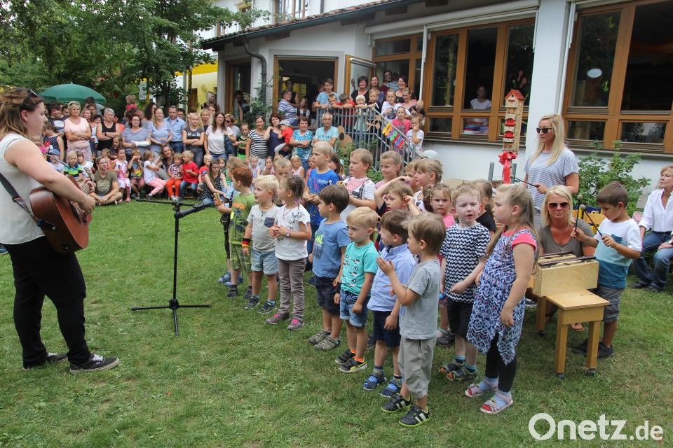 Mit Liedern aus aller Welt bekamen die Kleinen großen Beifall von den zahlreich erschienen Eltern, Geschwistern und Großeltern. Mehr als 500 Menschen tummelten sich Freitagnachmittag im Kindergarten. Kindergartenleiterin Sonja Rojer hieß die Besucher willkommen, unter ihnen Bürgermeister Josef Deichl. Sie dankte dem Elternbeirat, den Mitarbeiterinnen, den Müttern und der Jugendfeuerwehr Schmidgaden, die wieder aktiv das Kindergartenfest unterstütze. Bürgermeister Deichl sagte in seinem Grußwort, dass der Termin des Kindergartenfestes immer ein besonderer für ihn sei. Es freut ihn sehr, dass sehr viele junge Familien ihre Heimat in der Gemeinde Schmidgaden gefunden haben. Und es sei sehr positiv, dass der Kindergarten und die Kindertagesstätte erweitert werden müssen.