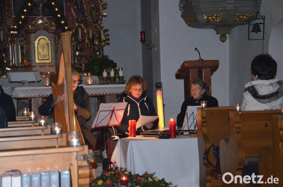 Gestaltet wurde das Adventssingen von dem Duo Lippert/Irlbacher, das bereits in der dritten Generation zusammen singt und musiziert. In der hektischen Vorweihnachtszeit lud Irlbacher zur Begrüßung die Zuhörer ein, sich ein bisschen Zeit zu nehmen und durch die Geschichten und Lieder ein wenig zur Ruhe zu kommen. Mit der Oberpfälzer Weihnachtsgschicht von Alois Gillitzer führten die drei Frauen die Zuhörer durch den Abend. Abwechselnd spielten sie mit Harfe, Gitarre und Zither weihnachtliche Lieder und verzauberten die Kirche in einen Ort des Friedens. Im Zeichen dessen sollte auch der Abend stehen, so rundeten sie den Abend mit dem Lied "Ich wünsch mir Frieden" ab.