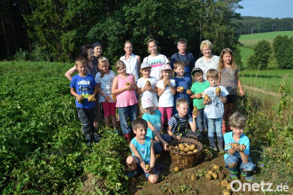 Die Kinder stürmten auf die Kartoffeln zu und klaubten sie mit Begeisterung zusammen. Sie freuten sich, wenn sie übergroße Knollen gefunden hatten und kürten sie zu Kartoffelkönigen. Jedes Kind wollte den Kartoffelkönig finden. Die größte Kartoffel brachte 420 Gramm auf die Waage und war natürlich der König. Bio-Landwirt Richard Völkl hatte zuvor zwei Kartoffelbeete mit dem Vorratsroder ausgegraben.